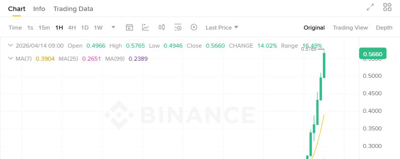 $MYX на Binance сейчас торгуется на уровне 0.5661 USDT после мощного импульса +159% за сутки. Объем торгов резко вырос, что говорит о сильном интересе к токену децентрализованной perpetual-биржи MYX Finance на BNB Chain и Linea.