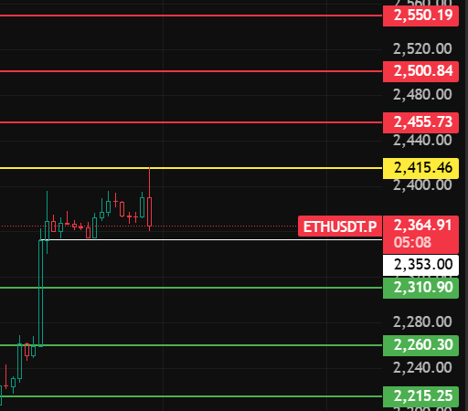 ETH acaba de romper el máximo de hoy y comenzó a retroceder, durante la noche presta atención cerca de la posición 2353, mientras no rompa esta posición seguirá subiendo (posiciones largas con poco capital), arriba hacia las posiciones 2415-2455-2500 para esperar posiciones cortas!