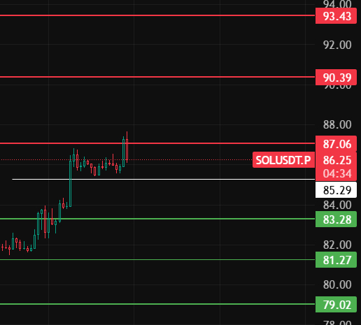 Si durante la noche retrocede y rompe la posición 85, entonces comenzará un ajuste a nivel de 1-2 horas, abajo hacia las posiciones 83-81-79 para esperar posiciones largas!#solana