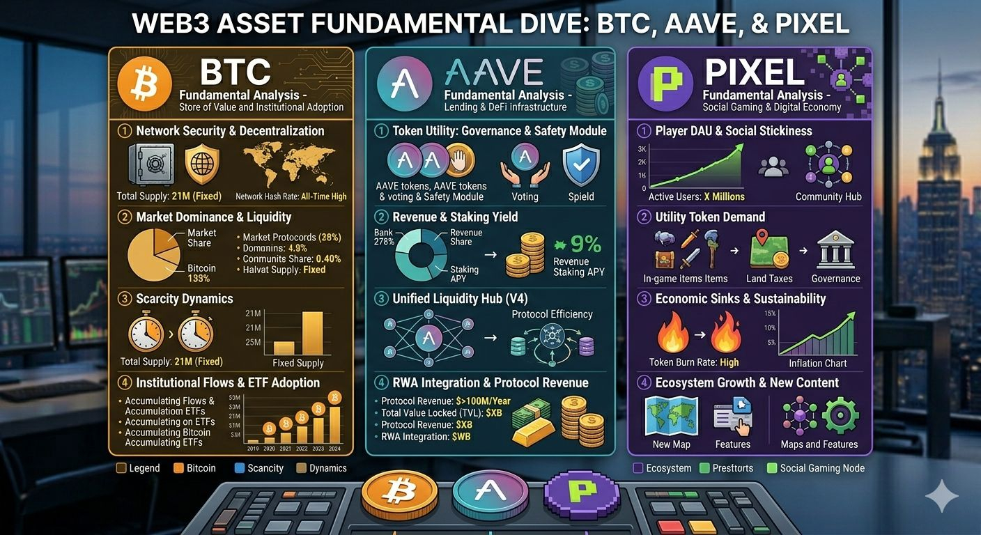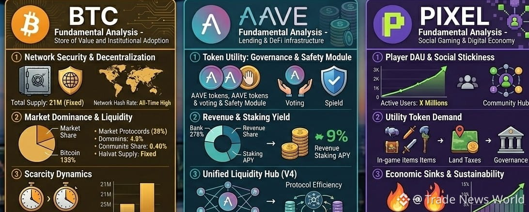 While BTC and AAVE represent the "finance" side of crypto, #PIXEL represents the "utility and attention" economy. Operating on the Ronin network, Pixels has become the benchmark for sustainable Web3 gaming.