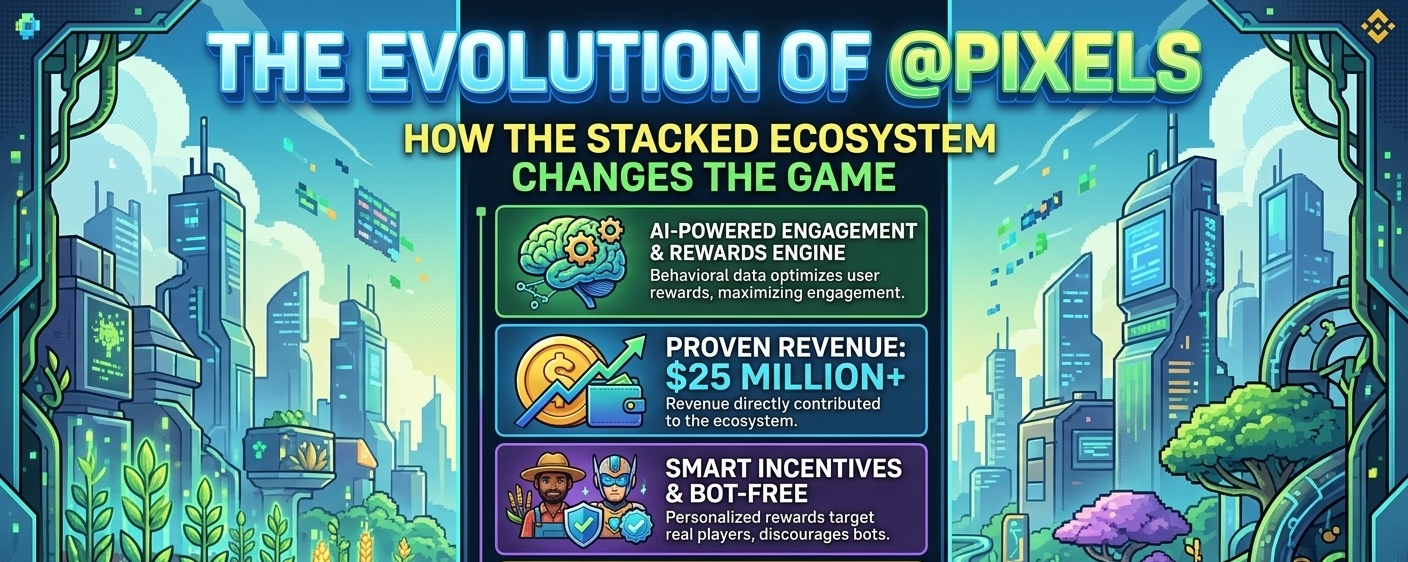 Web3 gaming is rapidly maturing past the days of empty promises and unsustainable mechanics. If you want proof of what a successful, sustainable model looks like today, look no further than the recent evolution of @Pixels @undefined https://www.binance.com/en/square/profile/pixels(https://www.binance.com/en/square/profile/pixels). What began as a highly engaging social farming simulator has officially transformed into a robust, multi-game economy. This transformation is driven by a groundbreaking infrastructure known as the Stacked ecosystem.