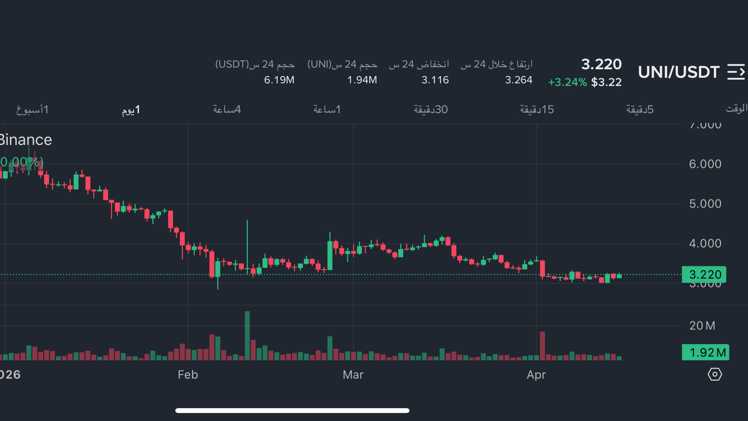 "No vendas en los fondos.. UNI actualmente está en una zona de acumulación agotada para los vendedores. La paciencia en estas áreas es lo que crea riqueza, y recuerda que la moneda está vinculada al proyecto Uniswap, que es el más fuerte en su campo, así que cualquier rebote en el mercado estará a la cabeza de los ganadores. Activa un stop loss por debajo de 2.90 y duerme en paz."