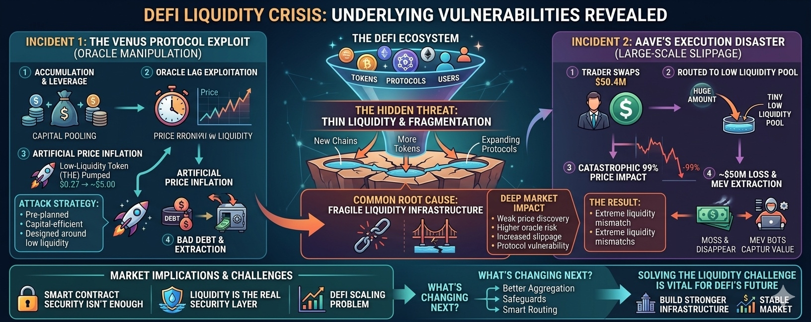 👉 Both events expose the same structural weakness — fragile liquidity infrastructure in DeFi