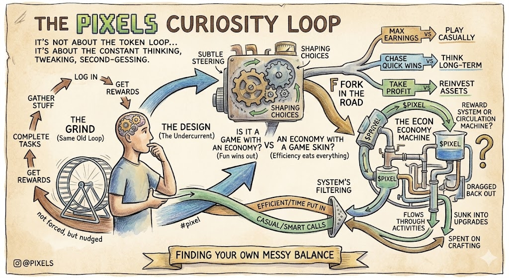 @Pixels realmente no te está obligando a jugar más duro. Está moldeando las decisiones que tomas mientras estás allí.