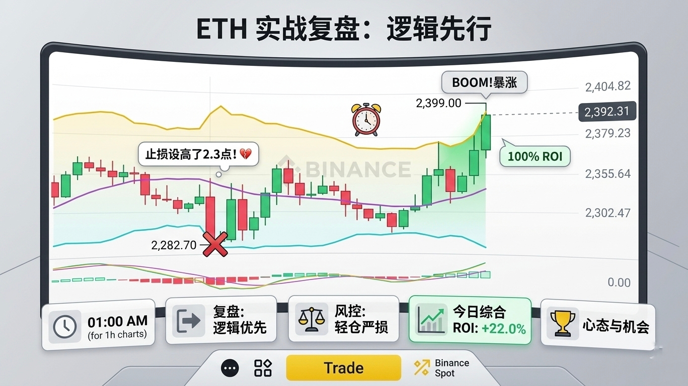 中午的 ETH 多单是一次教科书式的左侧埋伏,策略逻辑完全正确,市场随后也确实如期反弹。然而,仅因为硬性止损设置过高,导致仓位在反弹前夕被精准击穿。