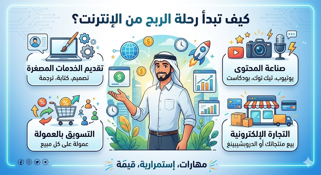 كثير من الناس يسألون: "هل الربح من الإنترنت حقيقي؟" الإجابة هي نعم، لكنه ليس "ضغطة زر" تجلب الأموال، بل هو عمل ذكي يتطلب تعلّم مهارة وتقديم قيمة.