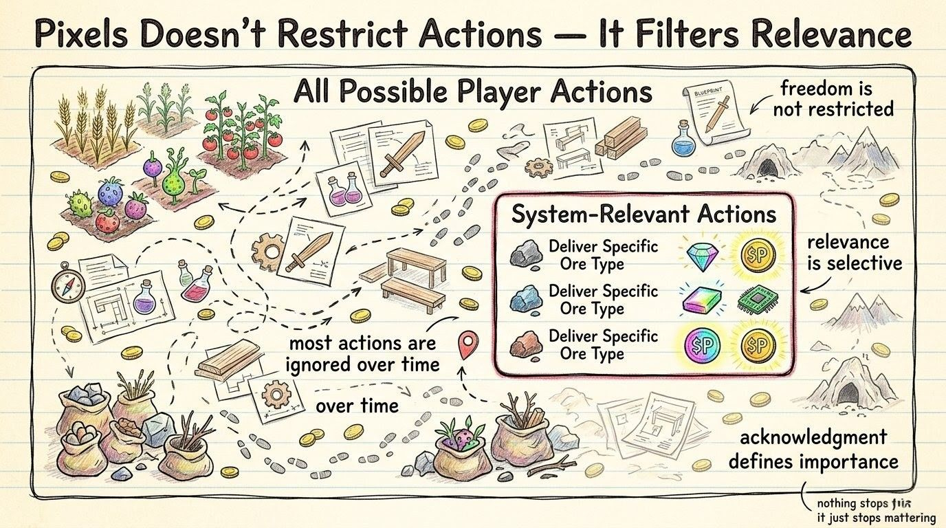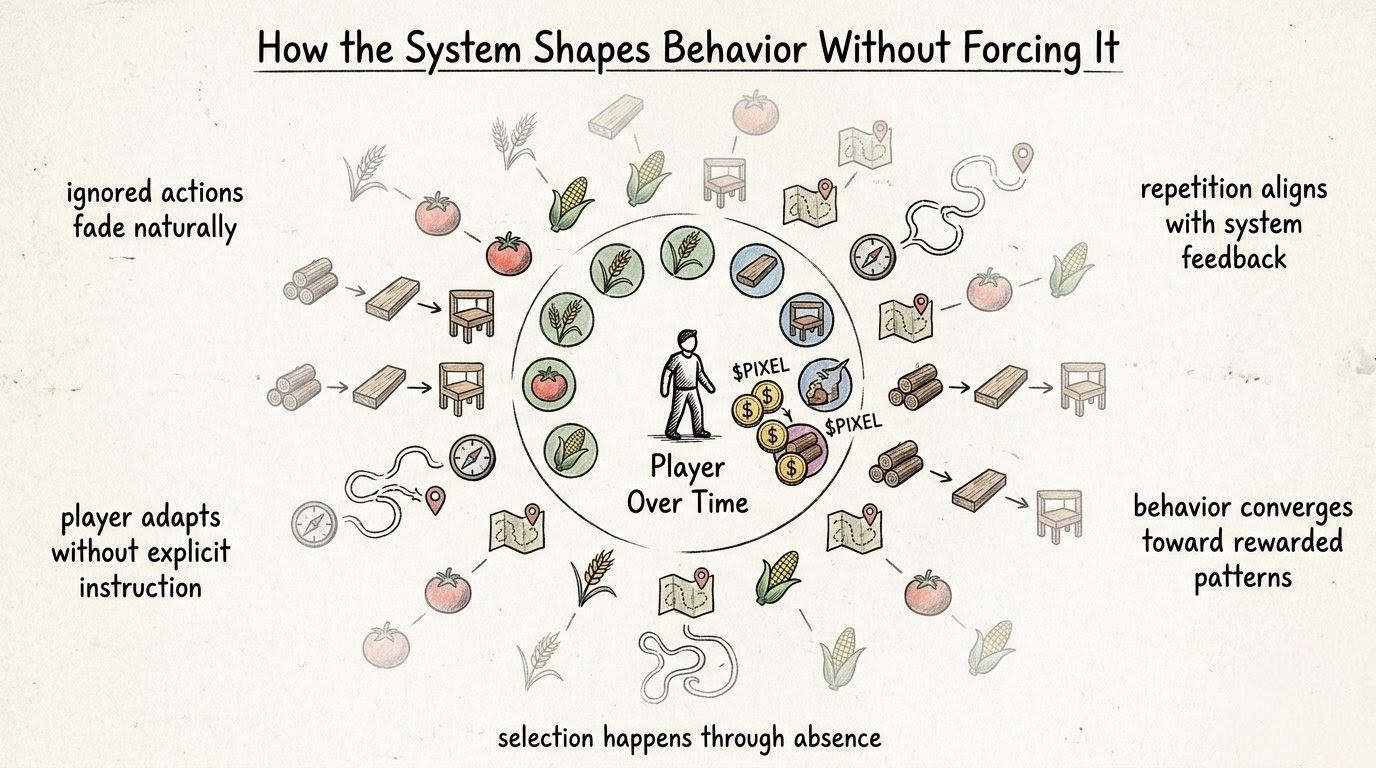 because it doesn’t feel forced, that’s the tricky part. it feels like i chose this, like i learned, like i improved. but if i’m being honest… most of those choices came after the Pixels system showed me what it acknowledges and what it ignores.