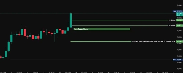 Condition:price holds above 76,670-75,842, then:market likely continues towards 80,000 zone 83,233 (swing target)