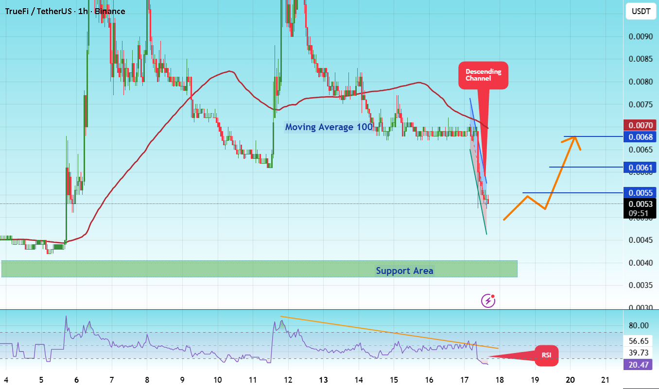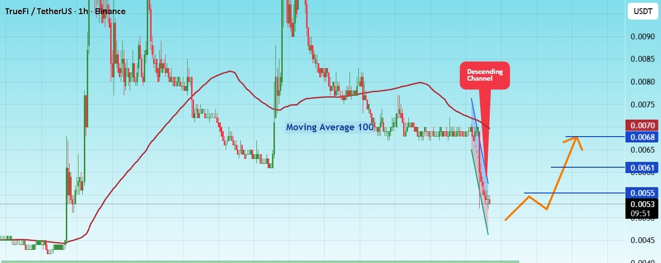 #TRU سعر يتحرك ضمن قناة هابطة على الإطار الزمني للساعة. وقد وصل إلى الحد الأدنى ويتجه نحو ارتداد. من المتوقع إعادة اختبار هذا الحد.