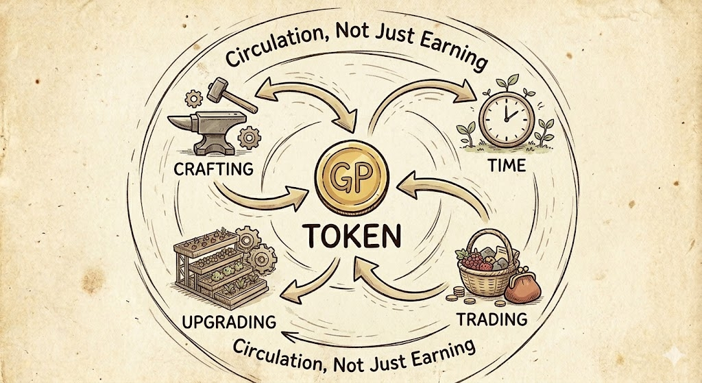 Tokens don’t just sit in your wallet once you earn them. They move-into crafting, upgrading, trading, and time investment. It doesn’t feel like earning in the traditional sense, but more like participating in a loop that constantly rebalances itself.