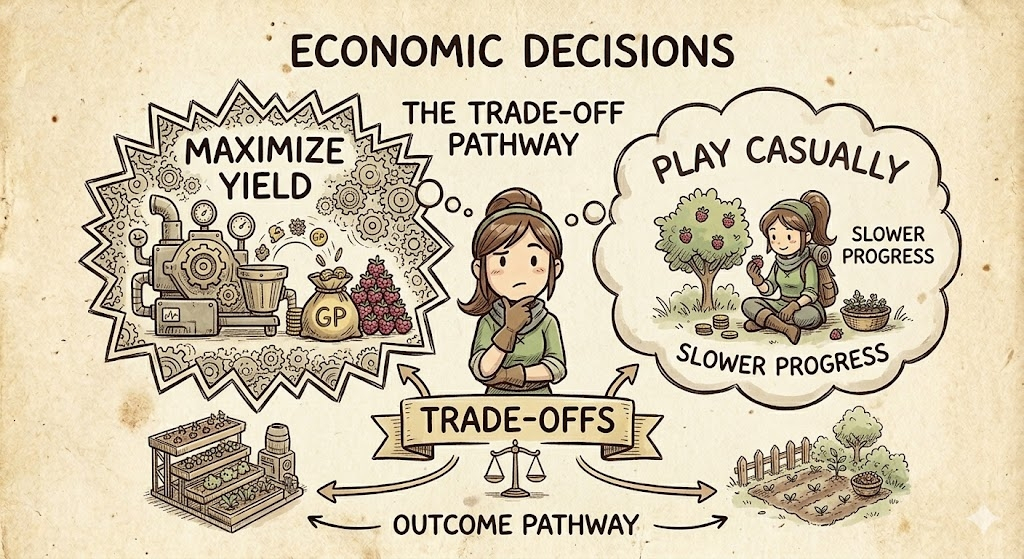 Now you begin to think-should I maximize yield from this task, or just play casually and accept slower progress?