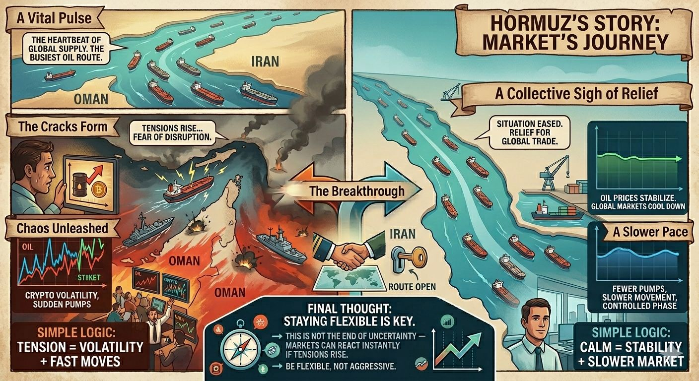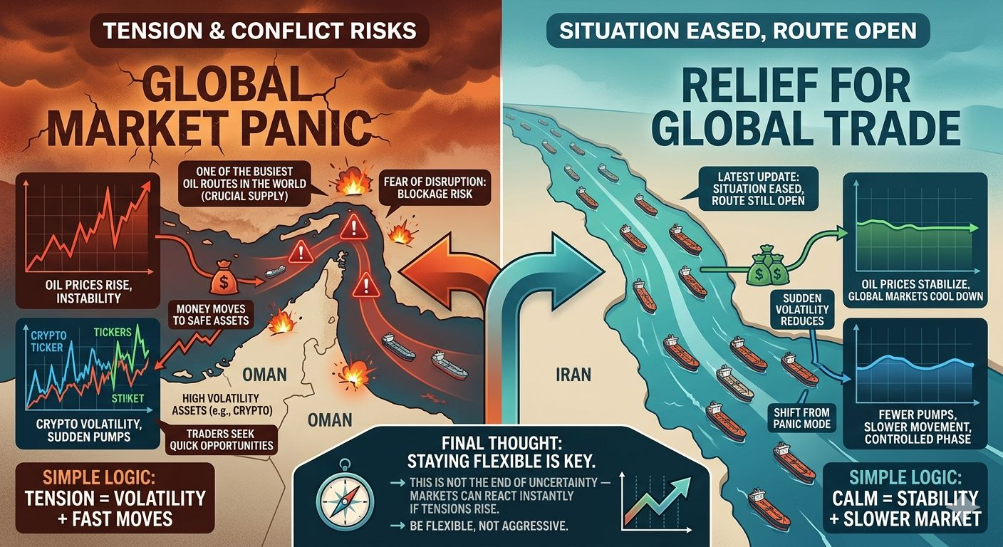 after the recent tensions and conflict risks in that region, there was fear that the route could be blocked or disrupted. whenever this happens, markets react quickly — especially oil and crypto.