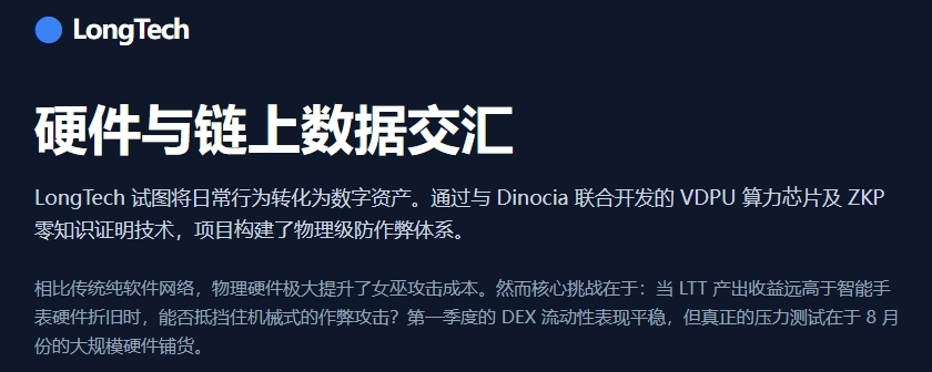 我一直在观察他们按路线图在第一季度上线的DEX表现,目前初期流动性相对稳定,并没有出现过度的抛压。但作为一名客观的观察者,我认为他们真正的考验在今年8月份。当大批量AI智能硬件正式发货,真实用户的错综复杂的行为数据涌入网络时,那套AI+硬件异常清洗机制能否扛住压力,才是决定这个代币模型能否长久运转的关键。@LongTech官方