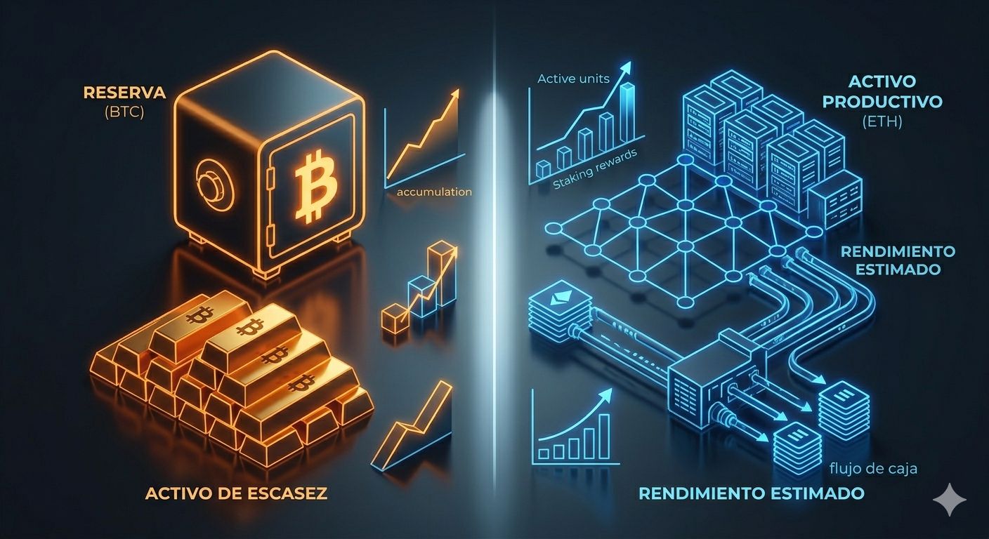 • ETH → activo productivo (staking + rendimiento)