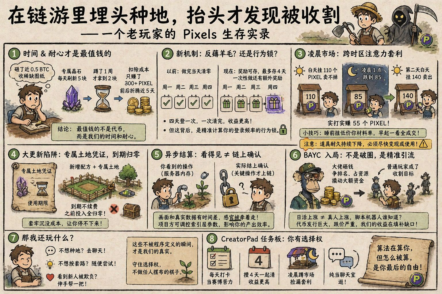 Lo he probado personalmente: durante el día, coloco 110 $PIXEL y nadie lo compra, a la una de la mañana baja a 85, así que lo compré de inmediato, al día siguiente lo pongo a 140 y lo vendo, ganando 55 tokens. No es manipulación del mercado, es una arbitraje de atención entre jugadores de diferentes zonas horarias: mientras Europa y América descansan, Asia compra, y cuando Asia duerme, Europa toma el relevo.
