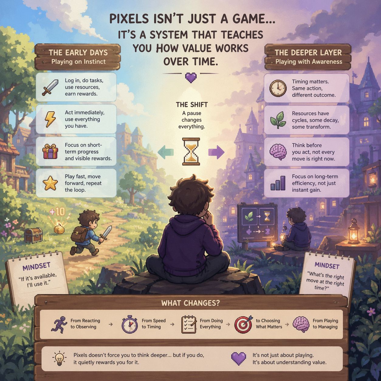They understand that value in Pixels isn’t fixed it shifts. It depends on timing, on sequence, on what you choose to delay as much as what you choose to do.