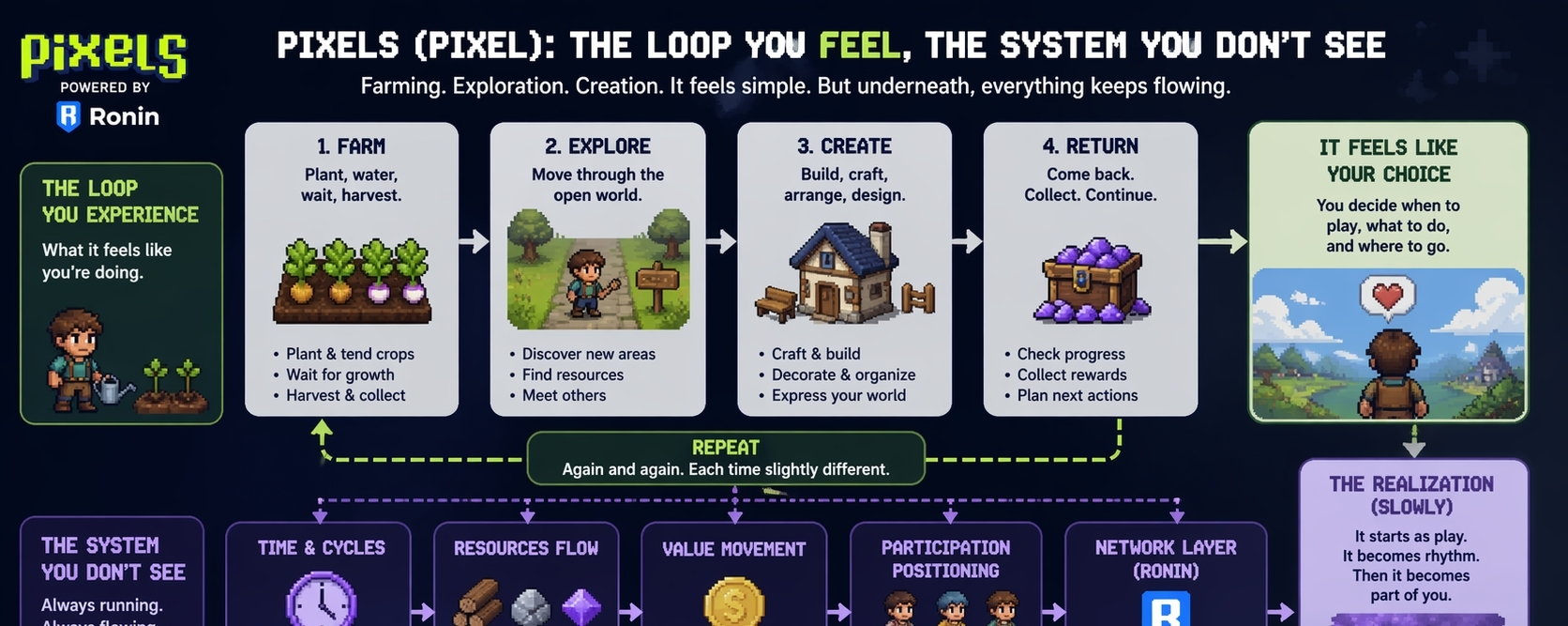 at the start, it was just something i opened. a quick look. a small check-in. farming, moving around, collecting things, logging out again. it felt separate then… like something i could step into and out of whenever i wanted.