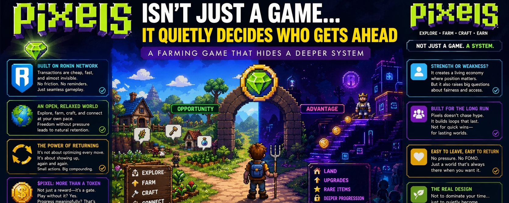 I’ve also been thinking about how $PIXEL fits into all this. It’s not just a reward token sitting on top. It feels more like a gate… or maybe a filter. You can play without it, sure. But when it comes to actions that actually matter—upgrades, land, deeper progression—that’s where $PIXEL starts to shape outcomes.