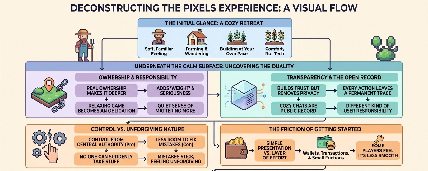 None of this makes Pixels a bad idea. If anything, it just shows how tricky it is to combine something meant to feel effortless with something that carries real structure underneath. It’s trying to make all of that invisible, or at least easy to ignore. The open question is whether that’s actually possible, or if players will always, at some point, notice the weight behind the calm.