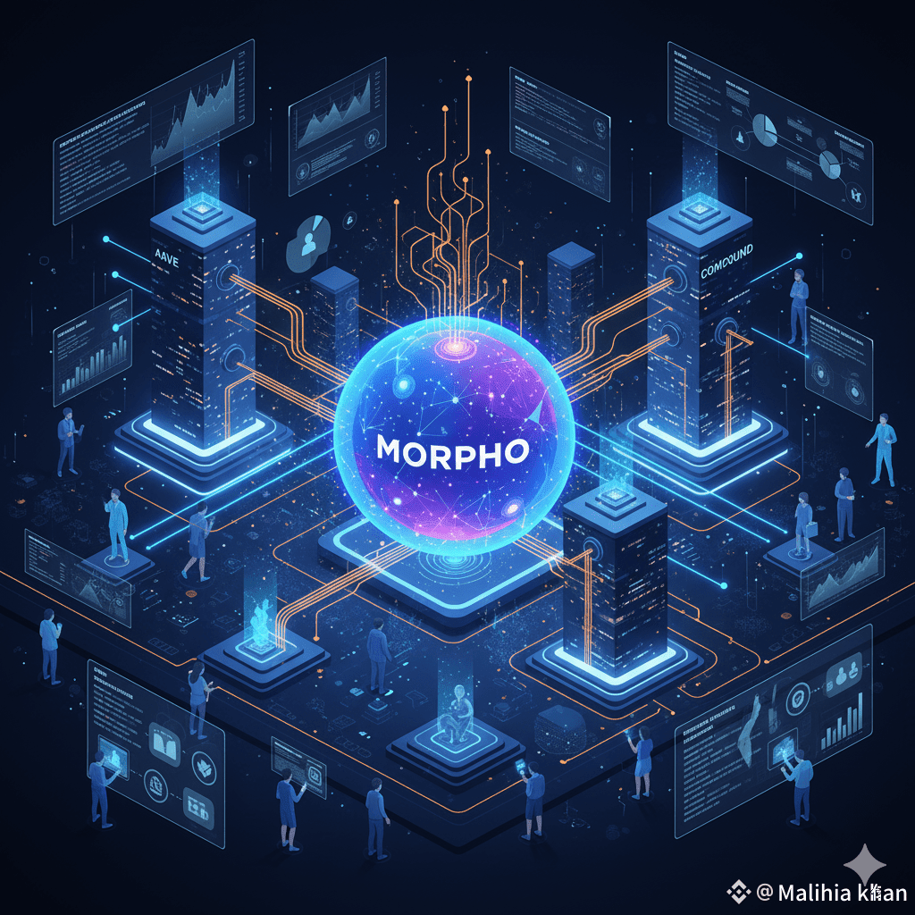 Morpho doesn’t replace Aave or Compound it sits on top of them and makes them better.