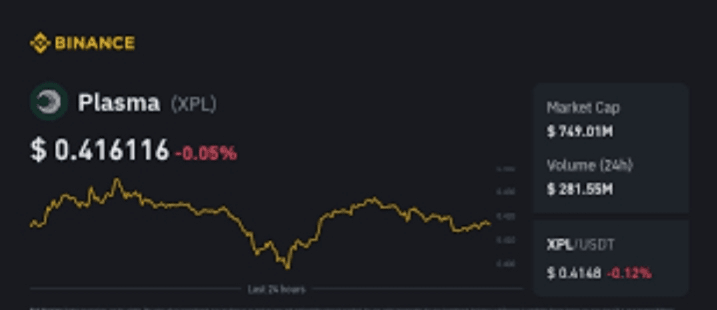 Plasma se está comercializando actualmente a aproximadamente $0.41 USD, como se muestra en el gráfico anterior, con fluctuaciones de volumen y precio notables que señalan un fuerte interés en el mercado.