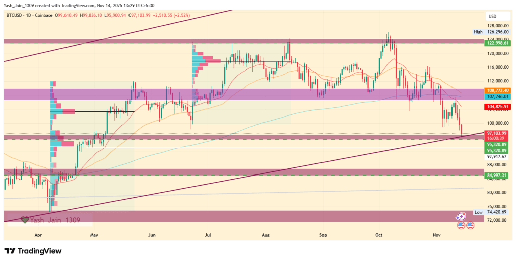 Pero si las zonas de soporte (cerca de ~$95K–$100K) se rompen, eso podría desencadenar una corrección más profunda. (goodfinancer.com)