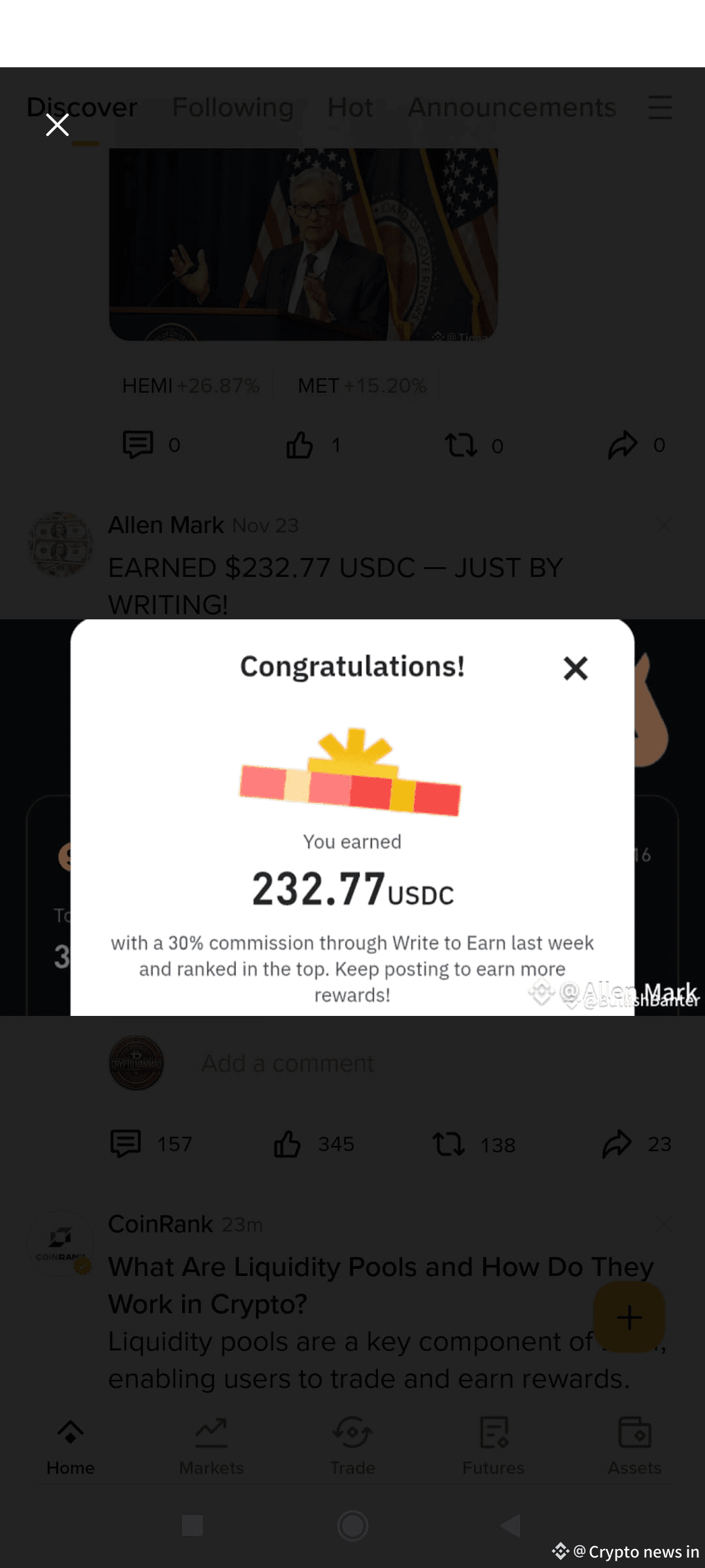 Gané $232.77 USDC a través del programa Write to Earn de Binance —