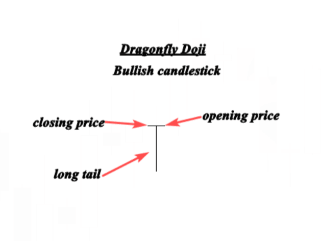 El Dragonfly Doji es un patrón de vela alcista que se forma cuando la apertura, el máximo y el cierre son iguales o aproximadamente el mismo precio. Lo que caracteriza al Dragonfly Doji es la larga cola inferior que muestra la resistencia de los compradores y su intento de empujar el mercado hacia arriba.