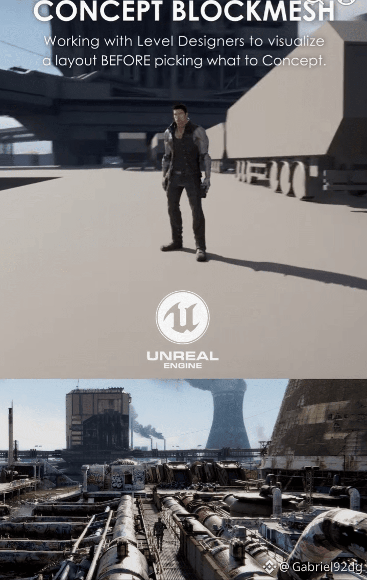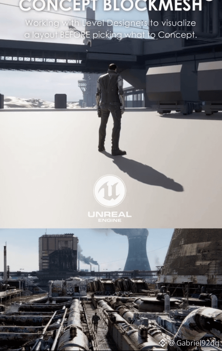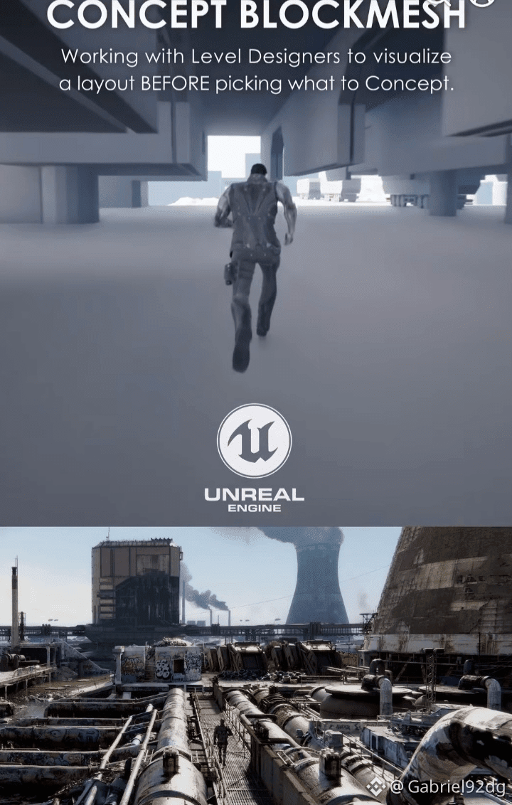 Las imágenes revelan una etapa temprana de desarrollo (blockmesh), donde se prueba el diseño de niveles antes de añadir los detalles visuales finales. Lo interesante es la estética y la disposición de los escenarios, que sugieren una jugabilidad mucho más táctica: