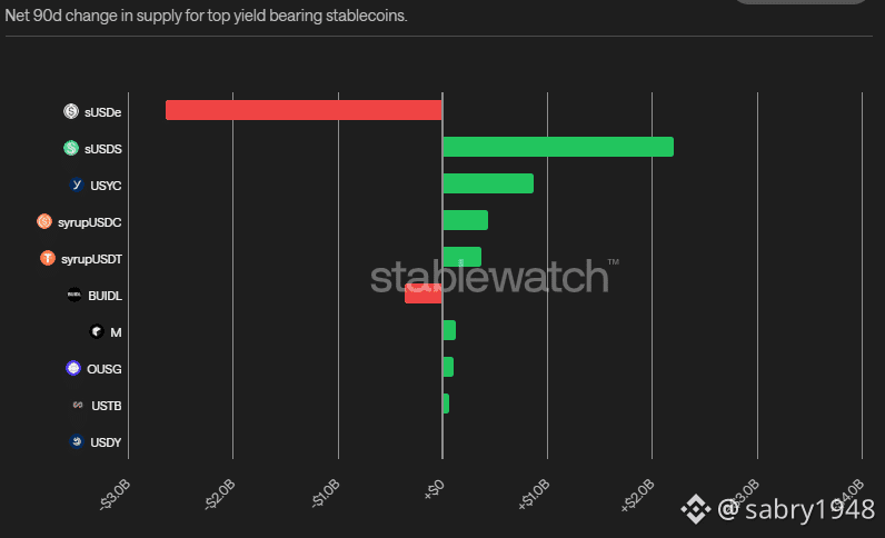 أشار التقرير إلى أن المستثمرين لم يغادروا سوق العملات المستقرة تماماً، بل انتقلوا إلى بدائل أخرى. بينما كانت Ethena تواجه تدفقات خارجة، شهدت بروتوكولات منافسة مثل sUSDS (التابعة لـ Sky) و syrupUSDC (التابعة لـ Maple) تدفقات داخلة كبيرة، مما يعني أن الثقة تحولت نحو المنافسين الذين يقدمون عوائد مماثلة.
