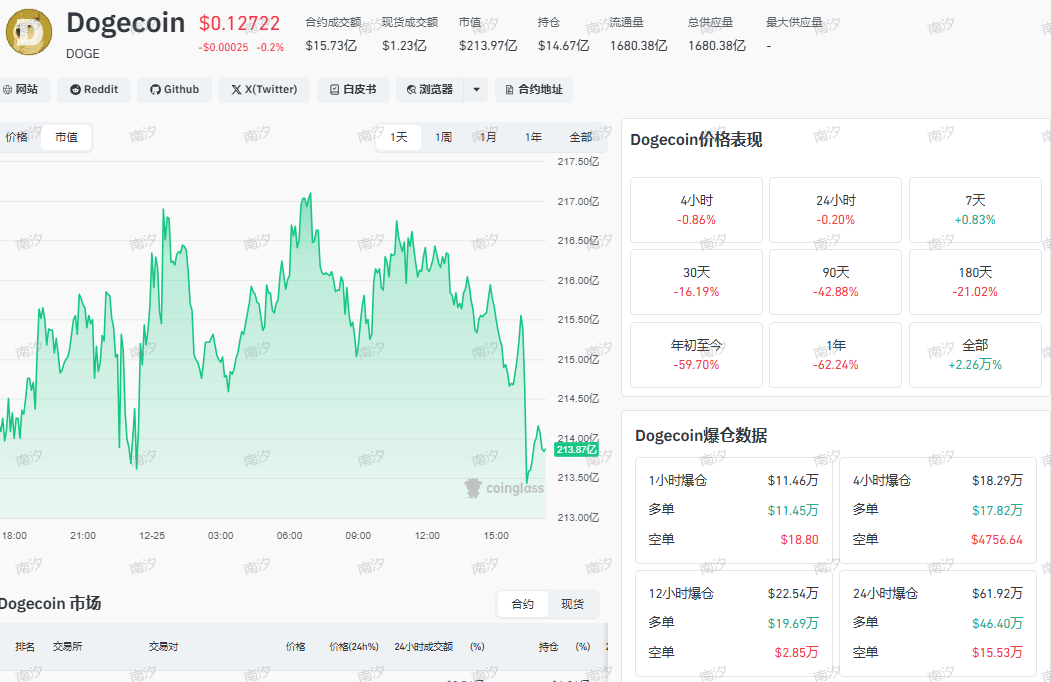 Desde los datos, DOGE ha caído un 16% en 30 días, y ha sido más del 42% en 90 días. Hoy, el gráfico de una hora sigue cayendo, ¿qué significa esto? Significa que los toros a corto plazo no tienen fuerza para contraatacar. Los niveles de resistencia están en 0.13300 y 0.13600, pero ahora ni siquiera se puede mantener en 0.13, ¿quieres un aumento? Difícil.