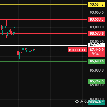 如果今天反弹站不上87740上方,那说明反弹没有力度,再次回踩下方支撑位留意86640-85270-83830这几个位置附近!#BTC走势分析