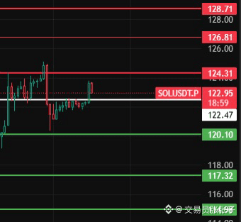 SOL今天留意122这个位置,只有反弹站稳此位置上方往上反弹力度才大,上方压力位留意124-126-128这几个位置附近!