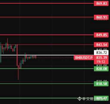 如果今天反弹站不上836上方,那说明反弹没有力度,再次回踩下方支撑位留意828-818-809这几个位置附近!#BNB走势