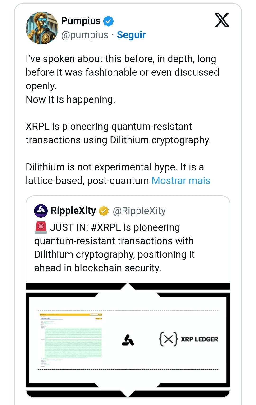 Esta preocupación fue recientemente destacada por el analista de criptomonedas Pumpius, quien llamó la atención sobre cómo el XRP Ledger (XRPL) ya se está posicionando para un futuro post-cuántico. Su análisis resalta un cambio estratégico que coloca a la XRPL por delante de la mayoría de los blockchains que aún dependen exclusivamente de estándares criptográficos vulnerables a futuros ataques cuánticos.
