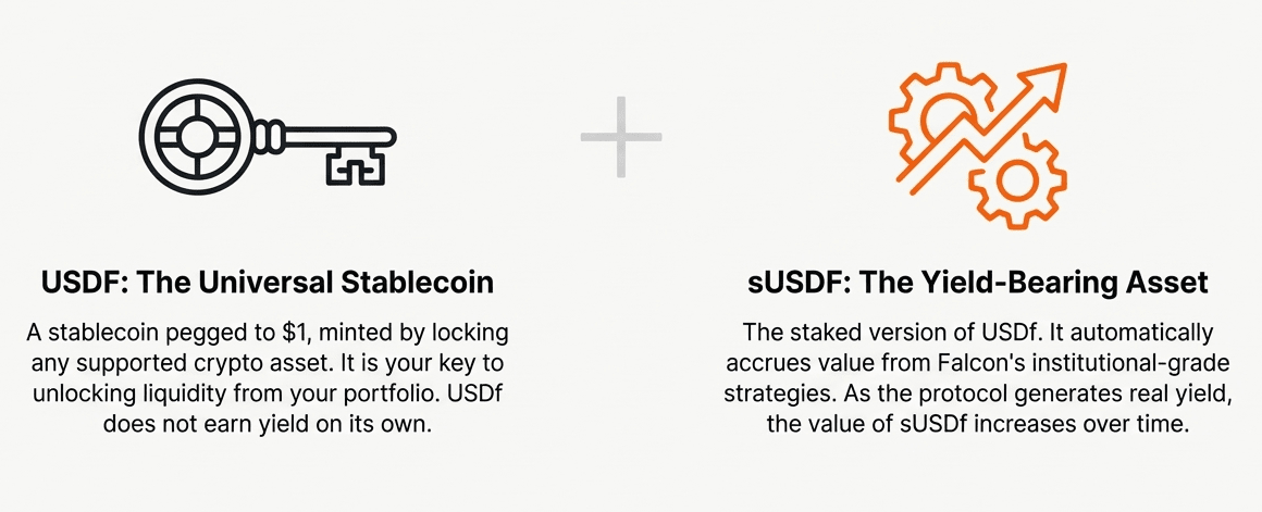 @Falcon Finance introduce un protocolo sintético de dólar único que redefine cómo interactúan la Liquidez, el Rendimiento y la propiedad de Activos a través de dos componentes clave.