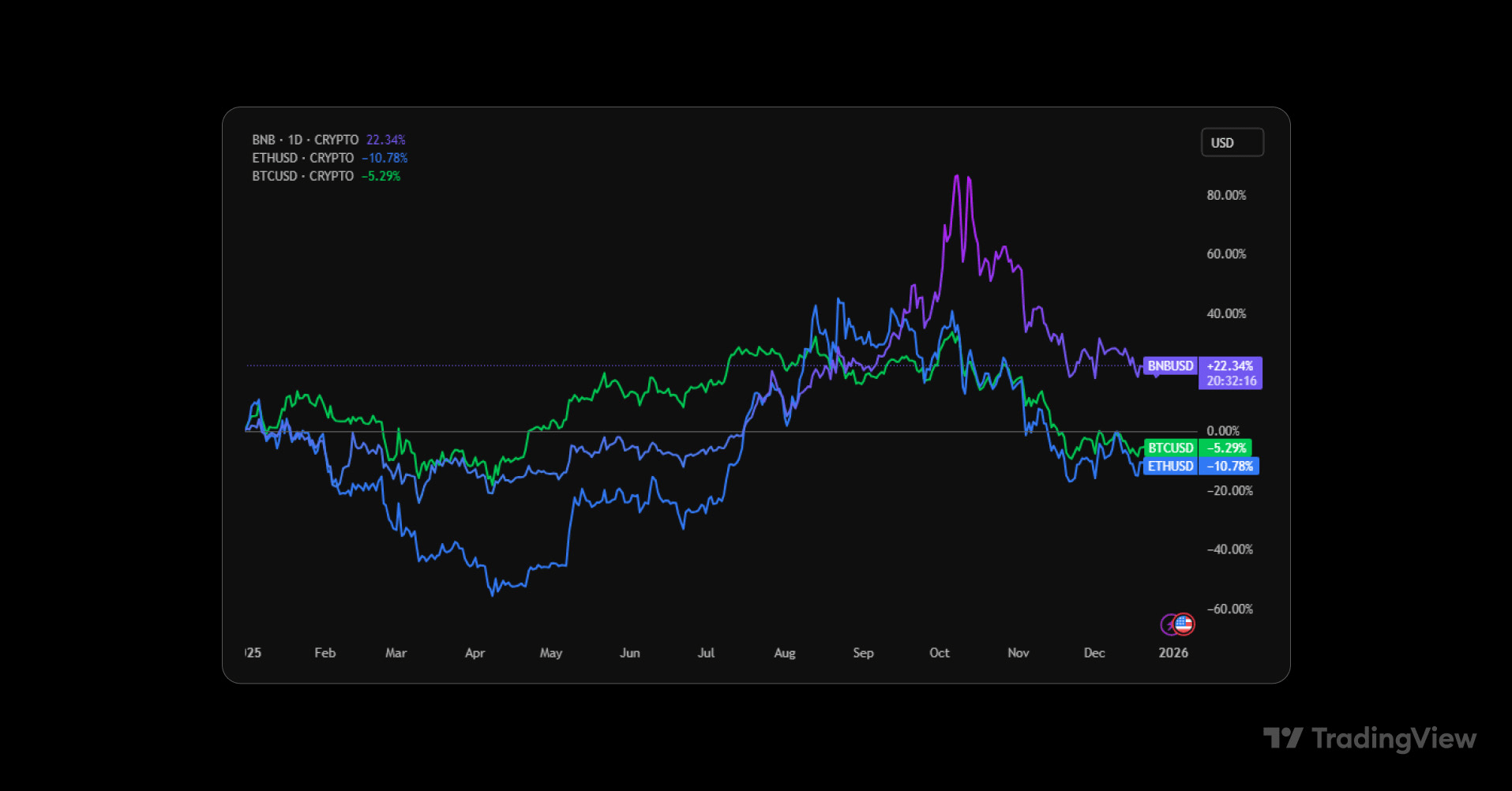 Binance Coin (BNB) en su camino durante el año 2025 proporciona un rendimiento positivo para sus inversores que crece un 21%. Este activo logró superar a los dos activos criptográficos más grandes, como Bitcoin (BTC) que bajó un 6% y Ethereum (ETH) que cayó un 11%.