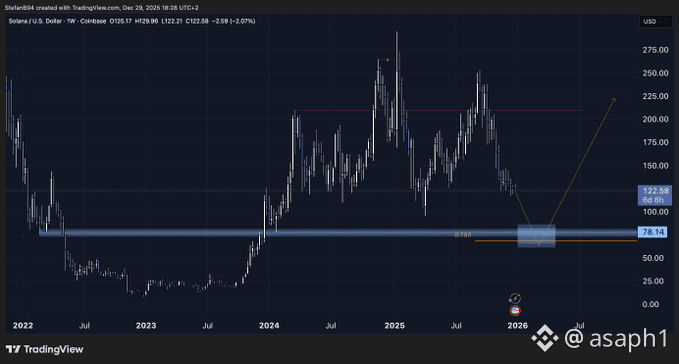 Olvídate de las velas rojas momentáneas, familia. Lo que estamos viendo es una consolidación estructural de libro. Solana viene dibujando mínimos cada vez más altos desde finales de 2023, y aunque rebotó en la zona de los $200, eso solo nos confirmó dónde está la resistencia fuerte a vencer. El soporte de hierro está entre los $78 y $80, una zona de demanda donde los que saben están acumulando sin prisa pero sin pausa. 📉➡️📈