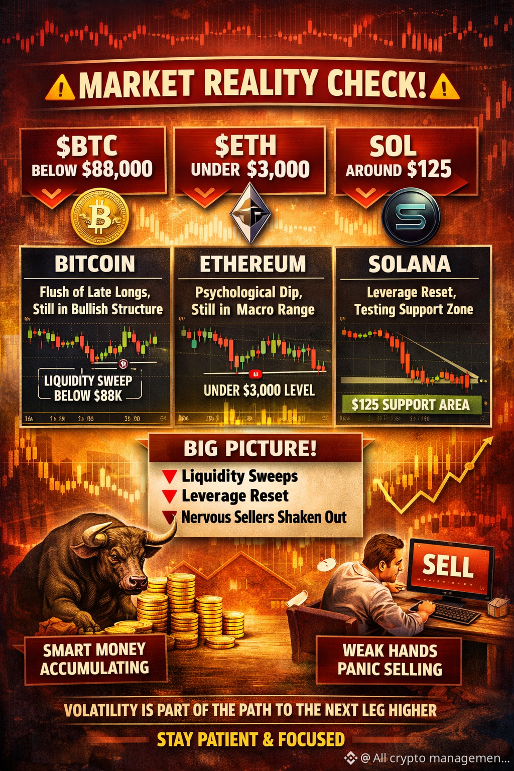 ETH trading below $3,000 is psychological more than technical. This level attracted heavy retail interest, so a dip below it was almost inevitable. ETH is still respecting its broader range and hasn’t lost its macro structure. Historically, ETH often underperforms briefly during BTC volatility, then catches up aggressively once BTC finds direction.