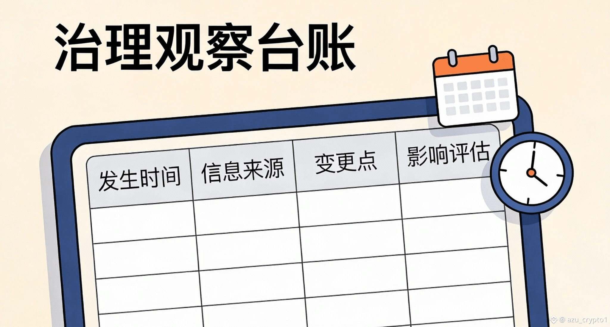 最后给你一个可执行的行动指引,我建议你今天就做一件很轻量但长期回报极高的事:建一个属于你自己的“治理观察台账”。你可以把它当成一个持续更新的笔记或表格,用同一套字段追踪所有与治理相关的信息:发生时间、信息来源、涉及模块(数据源/节点/PoR/OEV/模型/金库)、变更点是什么、潜在受益方是谁、最坏情况是什么、如果要试点该怎么缩小范围、以及你自己的立场为什么。你坚持写一个月,你会惊讶地发现自己已经具备了“提案审计”的肌肉记忆。然后你再进一步,把“信息源”也固定下来:只要未来 APRO 上线治理入口、论坛讨论区、链上投票页面或提案仓库,你就把它们加入信息源池,并给自己设一个很简单的纪律——任何转发或表态之前,至少回到一个原始来源核对一次。等到社区治理真正到来,你不需要临时抱佛脚,你会天然知道该看什么、该问什么、该怎么把观点写成可执行的建议。