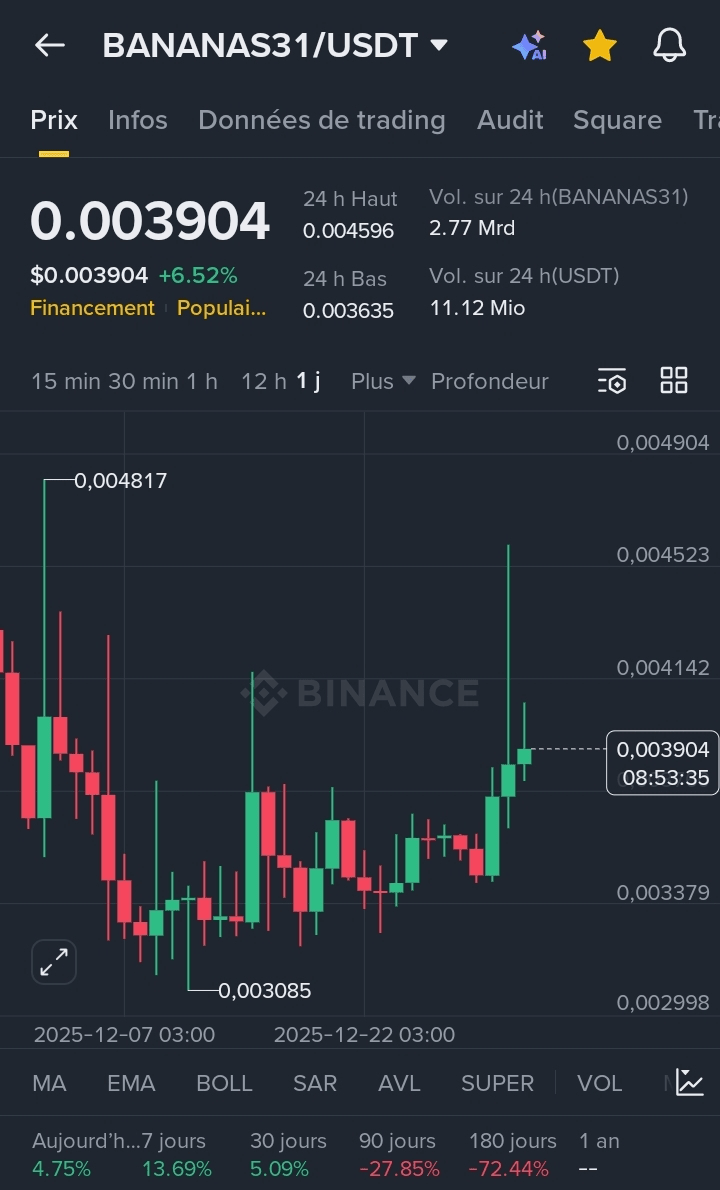 * Liquidez: Binance sigue siendo el motor principal del proyecto, concentrando la mayor parte del volumen de intercambio mundial en el par BANANAS31/USDT.