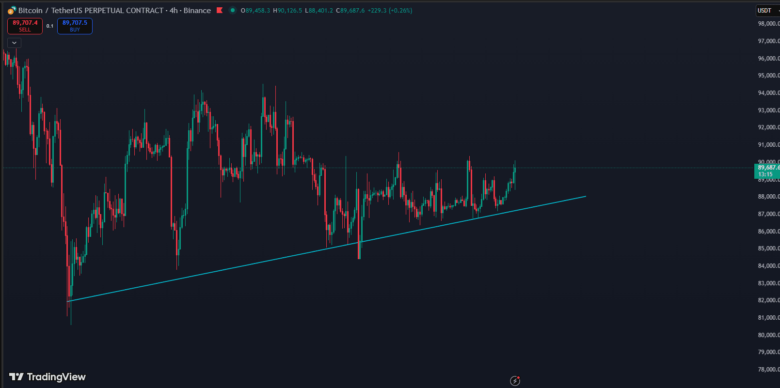 La estructura favorece la paciencia en lugar de la agresión. Siempre que el precio se mantenga por encima de la línea de tendencia ascendente y sostenga la región de soporte de $87K–$88K, la configuración más amplia se mantiene constructiva. Un quiebre limpio y sostenido por encima de $90K señalaría un renovado impulso y abriría espacio para la continuación.