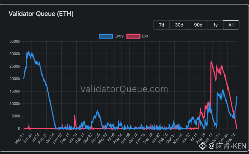 在矽谷與華爾街的交界,一個關於供需失衡的訊號今晚在以太坊鏈上點亮。2026 年 1 月 5 日,退場隊伍僅剩 32 ETH,對質押者而言等同於沒有人想解鎖資產。同時,超過 100 萬枚以太幣排隊等候鎖倉,讓市場進入罕見的供給真空前夕。