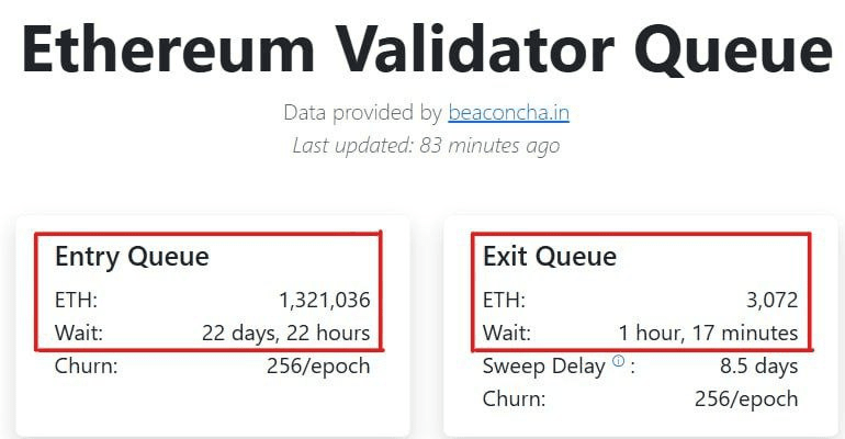 Actualmente, más $ETH está esperando ser staked que ser unstaked.