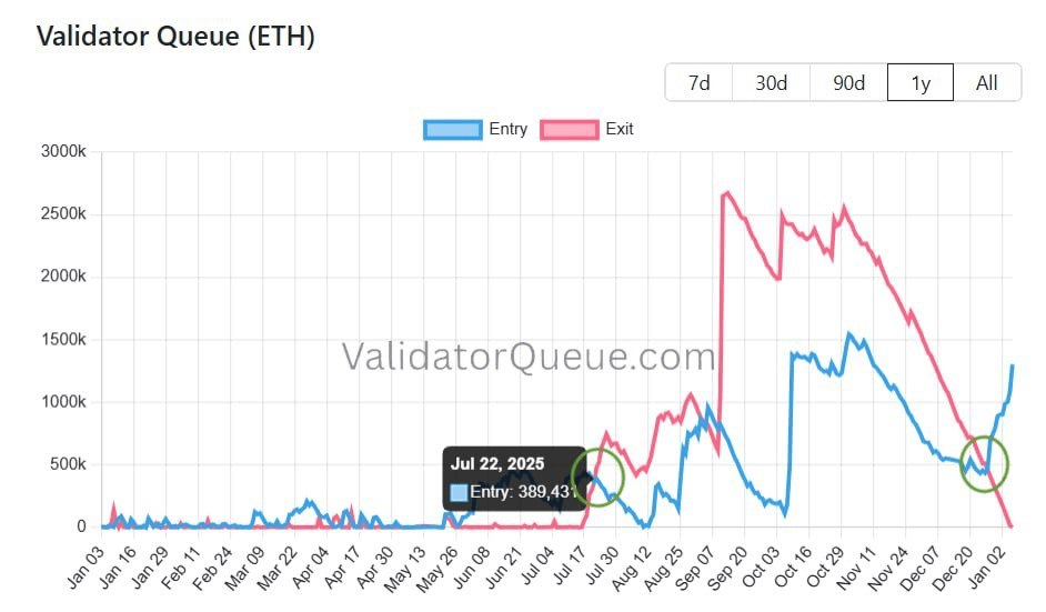NOTICIA: La cola de entrada para staking de Ethereum ahora es mayor que la cola de salida tras casi 6 meses.