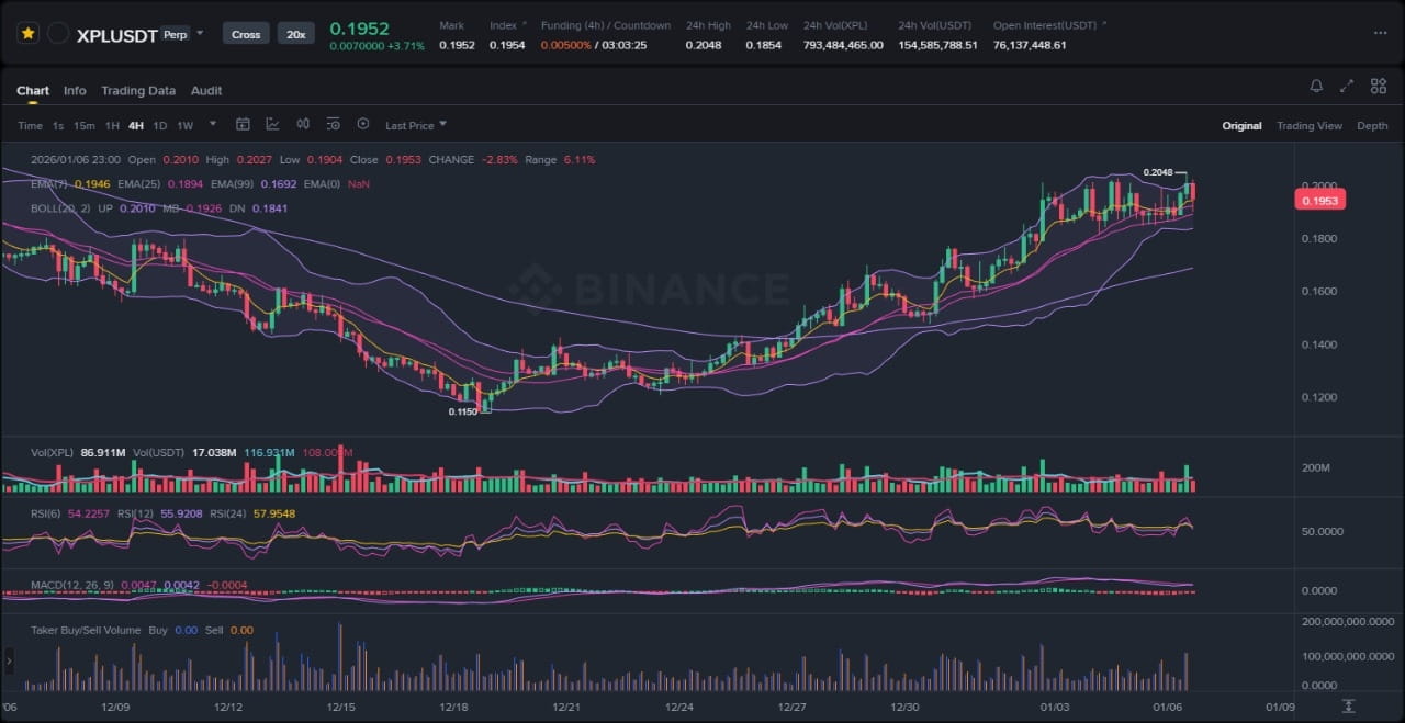 Para continuar con la tendencia alcista, el precio de XPL debe demostrar fortaleza al mantenerse por encima de la zona de confluencia de $0.170, idealmente formando mínimos más altos por encima de la EMA de 7 períodos mientras el volumen aumenta en las velas verdes. Un retozo del máximo reciente en $0.172 seguido de una ruptura limpia por encima de la banda superior de Bollinger confirmaría un impulso impulsivo, con objetivos de extensión hacia los máximos anteriores en torno a $0.185–$0.200, donde la resistencia histórica de octubre podría actuar como zonas de toma de beneficios. El MACD debería mantener una expansión positiva del histograma, y el RSI debería ascender hacia 70 sin divergencia, lo que respaldaría esta continuación alcista, posiblemente amplificada por una estabilización tras la liberación si las transferencias permanecen sólidas.