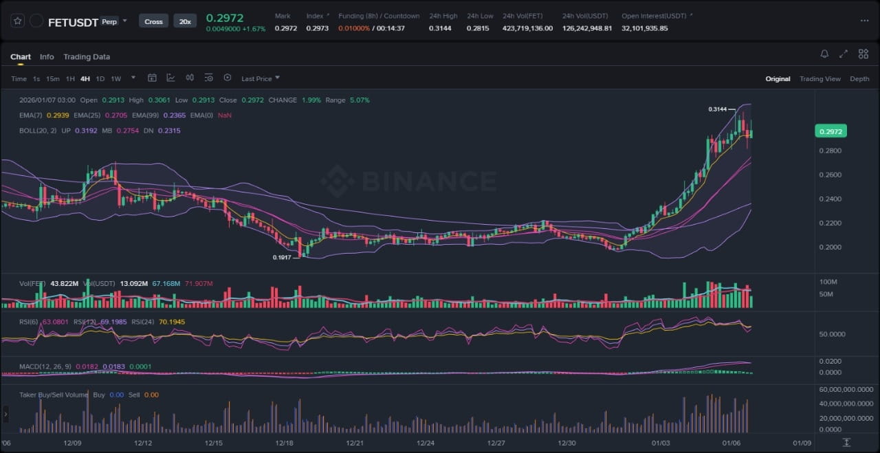El segundo tema se centra en los avances específicos del proyecto en capacidades de IA, también con un fuerte tono alcista. El anuncio de Fetch.ai sobre agentes de IA diseñados para superar las barreras del comercio electrónico en línea, con lanzamiento previsto para enero, posiciona a FET como facilitador de pagos sin problemas usando tarjetas de crédito, stablecoins y su token nativo. Esta innovación podría ampliar la utilidad de FET en aplicaciones del mundo real, aumentando la demanda del token mediante una adopción práctica. En conjunto, el sentimiento de noticias amplifica la estructura alcista del gráfico, sin indicios bajistas que sugieran distribución o capturas de liquidez; más bien, apunta a fases de acumulación orgánicas respaldadas por progresos fundamentales.