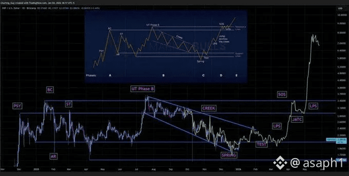 ¡El gigante dormido de los pagos transfronterizos está despertando y la señal de entrada no es una corazonada, es pura psicología institucional grabada en la gráfica! 📈 XRP está dibujando lo que los expertos llamamos una Acumulación de Wyckoff, y si sabes leer entre líneas, esto es básicamente ver cómo las "ballenas" y los grandes fondos están barriendo la mesa antes de que empiece la fiesta de verdad.
