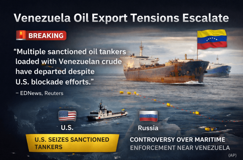 • Estados Unidos ha aumentado la aplicación de las sanciones: las fuerzas han incautado o interceptado varios petroleros vinculados a sanciones, incluido un buque con bandera rusa anteriormente conocido como Bella 1. (WHEC.com)