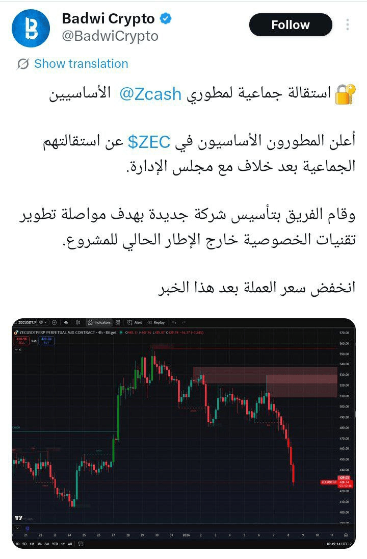 ⚡️El mercado reaccionó negativamente a la noticia, ya que el precio de ZEC cayó drásticamente en medio de preocupaciones sobre el futuro de la gobernanza y la hoja de ruta.